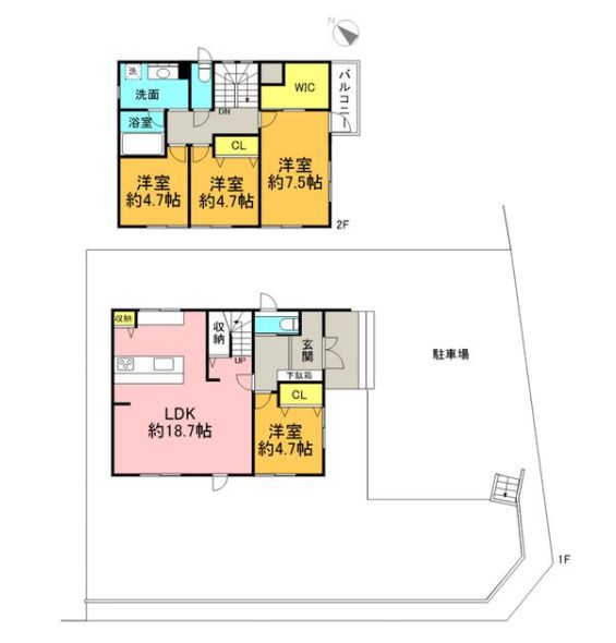 間取り 4LDK(洋 4.7・4.7・7.5・4.7 LDK 18.7)